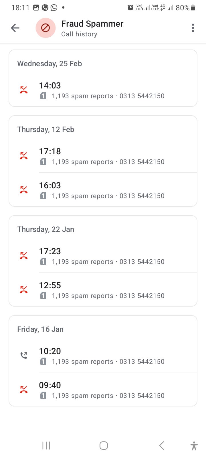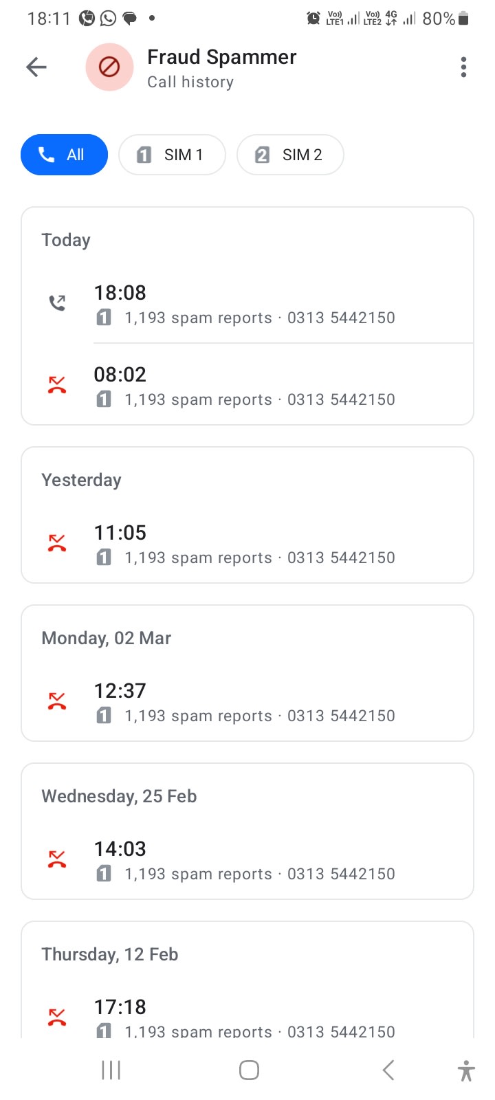 Daily Call Ati Hai. Mein Neh Block Kia Tab Bhi Call Kartey. Call back Par Call Pick Nahi Kartey. Scammer Hai Ye. Isko Block Kafein Aur Rwport Kafein Har Platform Par.