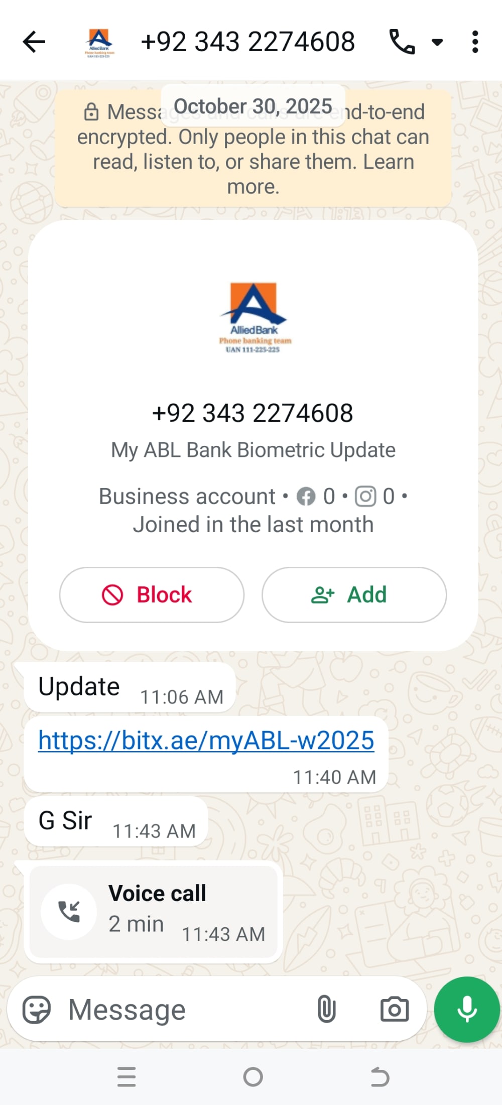 Call spoofing from a banking official number and asked to contact at this Whatsapp number. A phishing link is shares and asks to share otp to them.